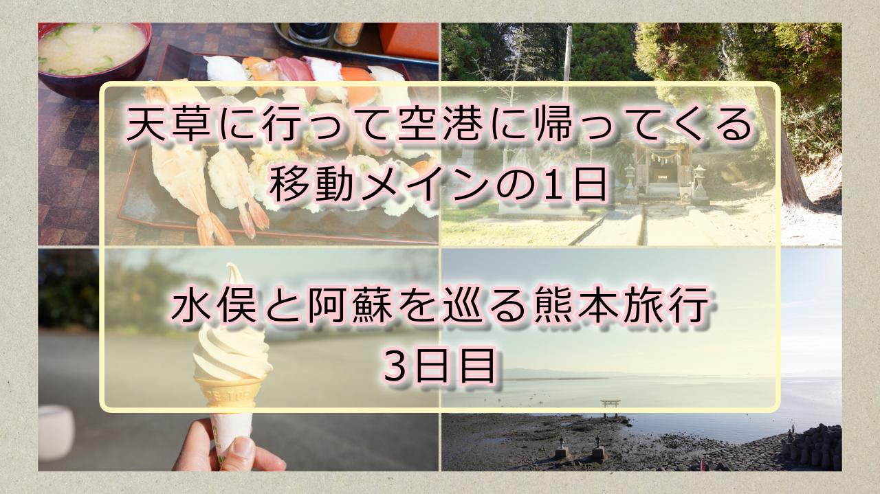 熊本に走っていた鉄路の跡を見つつ、ジェラートやお寿司を食べて温泉旅館に泊まった1日でした。