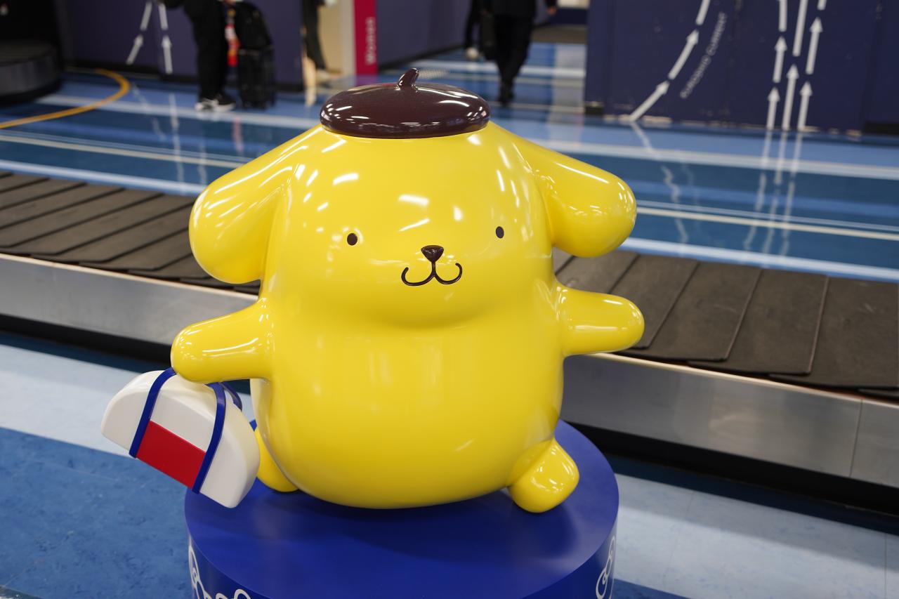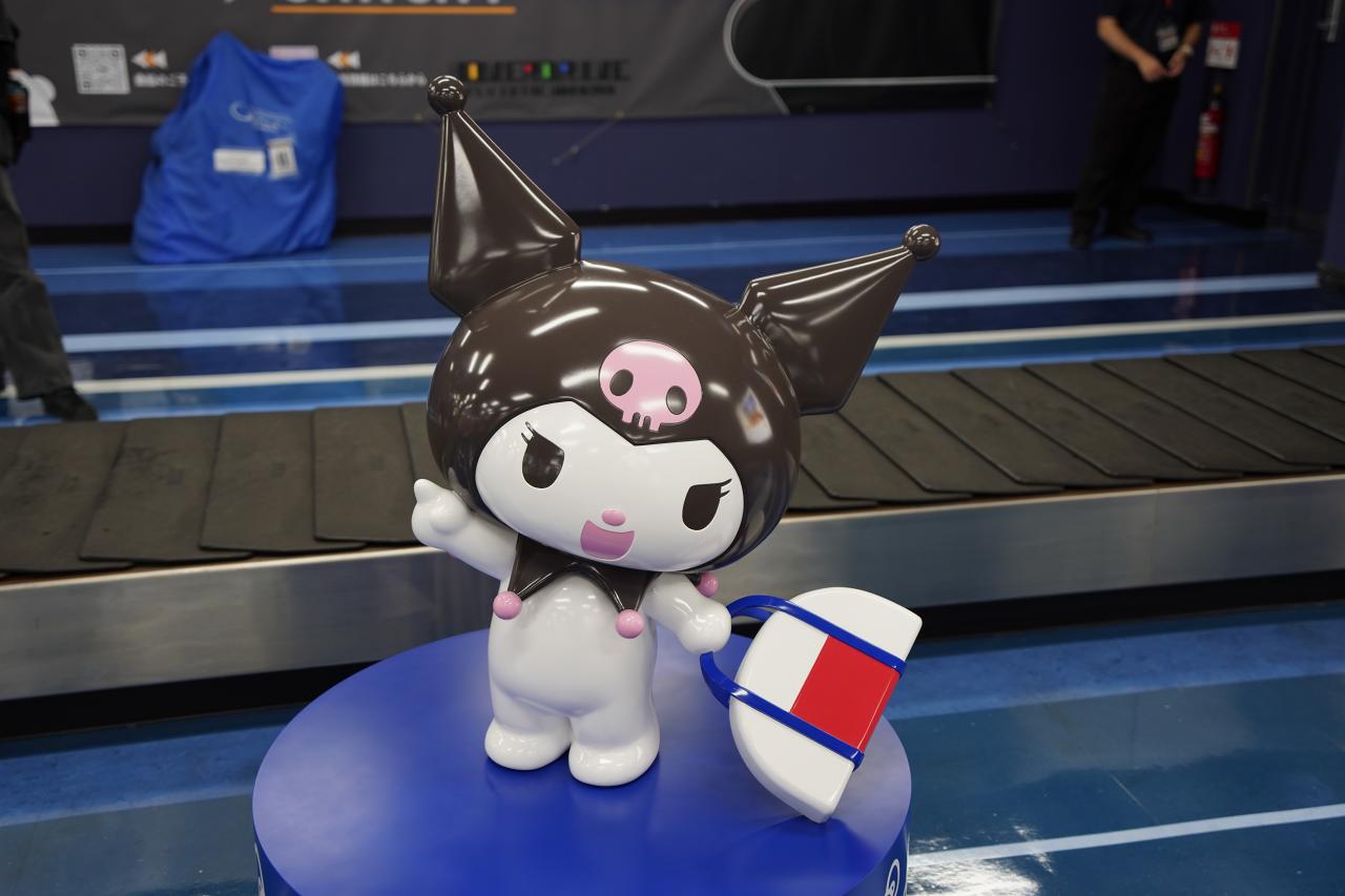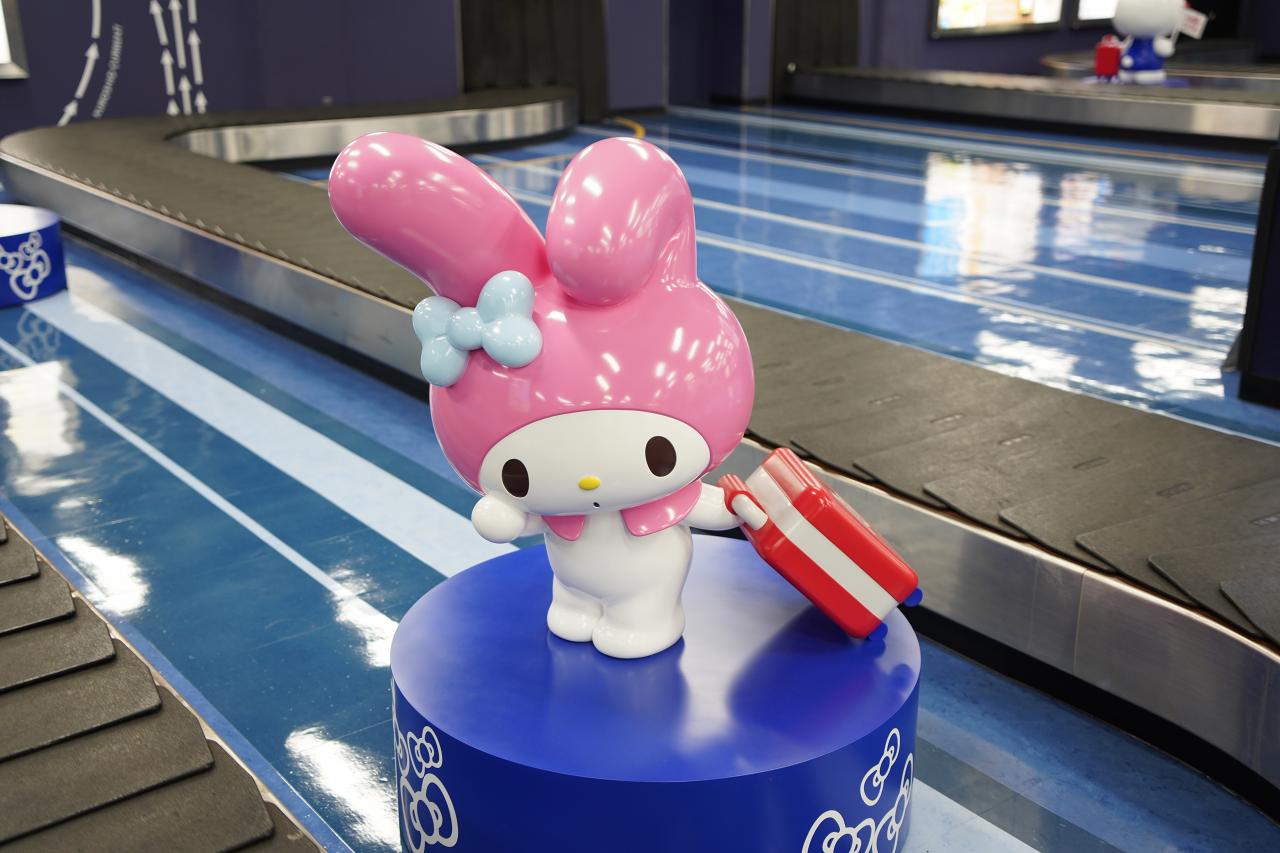 降りた瞬間からサンリオのキャラクターがお出迎えしてくれて、手荷物受取所にはいろんなキャラクターが待っています。でも推しのメルちゃんは?