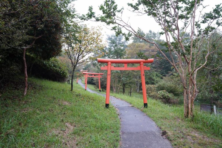舗装された坂道を進んで行くと鳥居が並んでいます。こういう鳥居がたくさんあるのって稲荷神社っぽい。