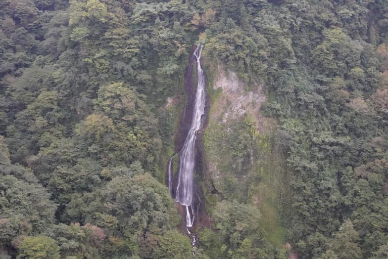 女滝をズームアップ。高低差もあって迫力ある滝です。「震動の滝(男滝)」は近くから見られるみたいなんだけど、こっちは行けないっぽい?