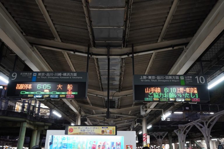 乗車するのは6時5分発。そういえばこの時間は山手線も「○分後」じゃなくて時間で表示sれ手居るんだね。正直○分後って表示はどっちが先に来るのかわからないし、遅延をごまかされがちだから好きじゃない。最近山手線で遅れてても何も言わないことが多いような気もするし。