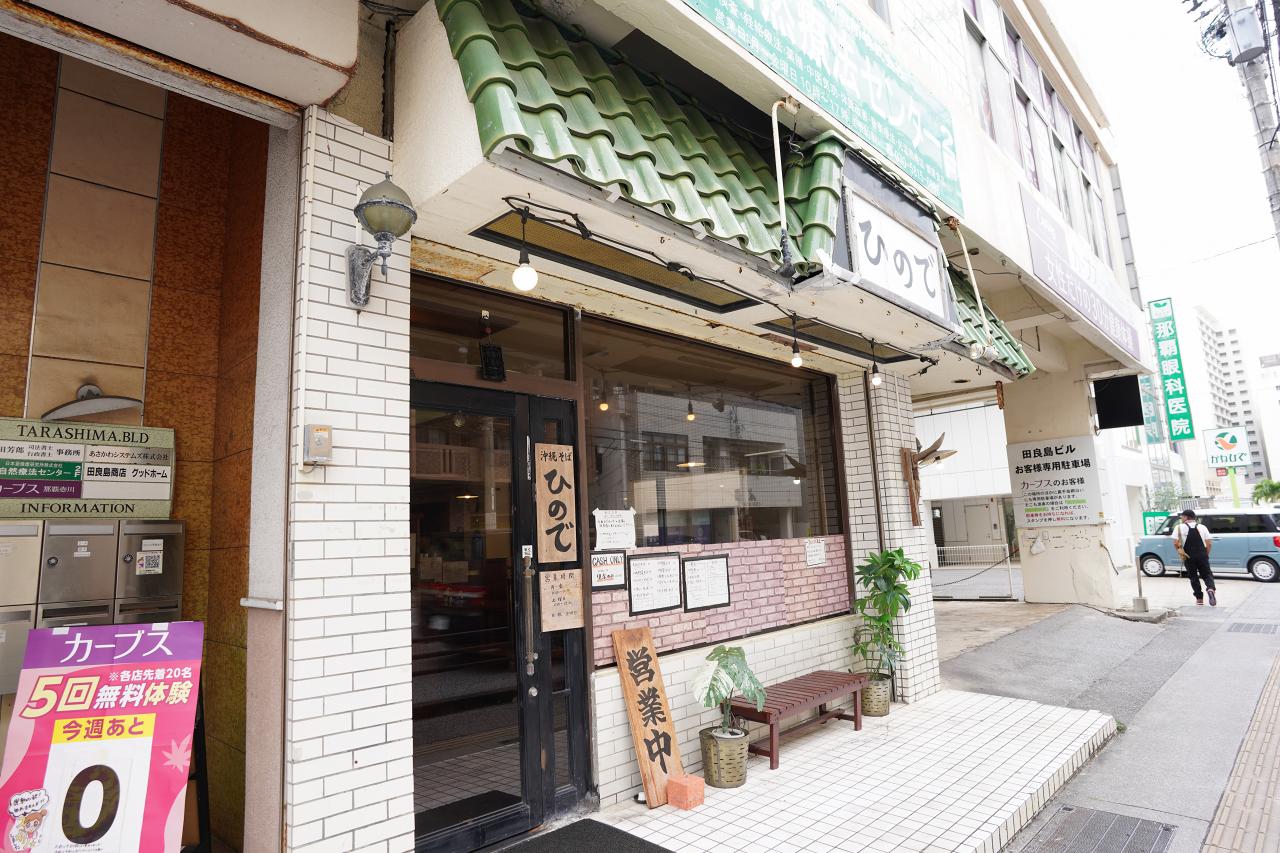 壺川駅を降りて、歩いて数分の場所にある「ひので」という沖縄そば屋さんへ。結構評判がいいみたいなので、朝食と昼食(?)を食べに来ました。さすがに11時のオープン直後は誰も居なかったので即入店。
