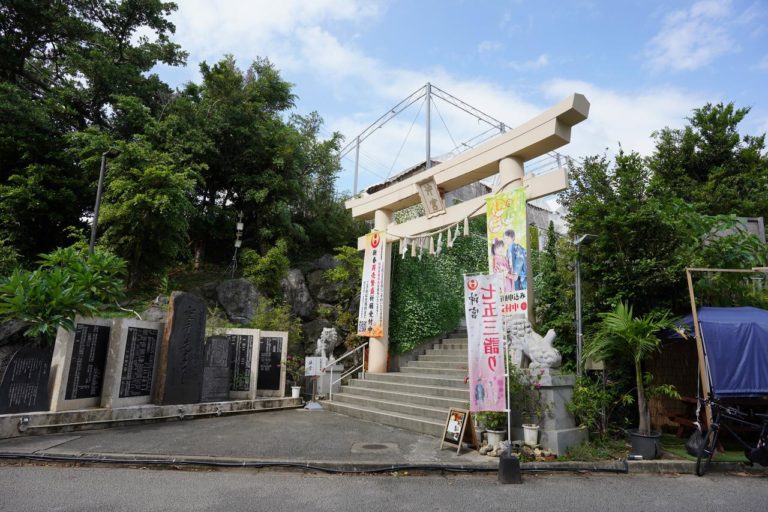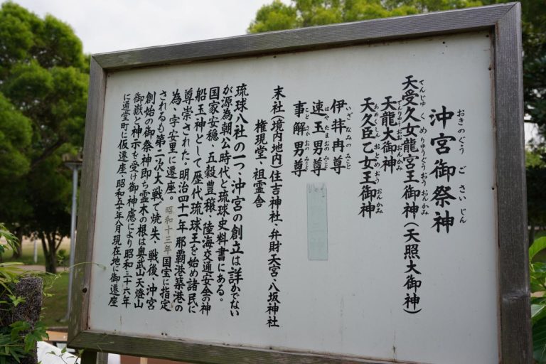 祀っているのは天照大御神や天龍大御神など。かなりの歴史がある神社のようだけど、以前からあった社殿は沖縄戦によって焼失。今の社殿は昭和36年に造られたものだそうです。