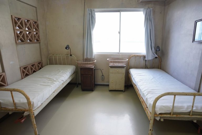 続いては病室。外は白飛びしてしまっているけど、窓からはエメラルドグリーンの海が一望できる絶景。そんな景色を見ていたら病気も早く治りそうです。