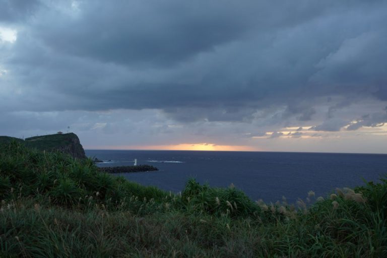宿にチェックインして、夕食の時間までの間に見に行きたいのが夕日。ここ与那国島は日本最西端ということもあって、太陽が日本で一番最後に沈むんだよね。そんなわけで宿からほど近い「日本最後の夕日が見える丘」にやってきました。