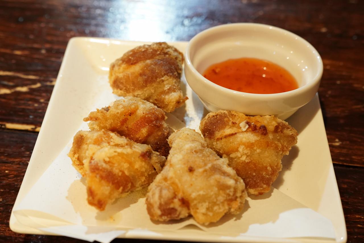 人数が多くなったので1人だとちょっと……と思っていた料理を追加注文。まずはニンニク豚巻きです。ゴロっとしたニンニクが丸ごと入ったスタミナ抜群の一品で、ついつい箸が伸びてしまう。