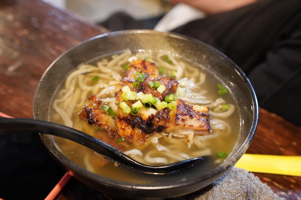 与那国島で獲れる「イリオモテアザミ」を練り込んだ「あざみ麺」を使用した沖縄そば(メニューとしては汁そばという感じだったかな?)。普通の八重山そばに比べてつるもちの食感がおいしい一杯。焼きそばや混ぜそばなどもあるので、どれか1つは食べてみてほしい。