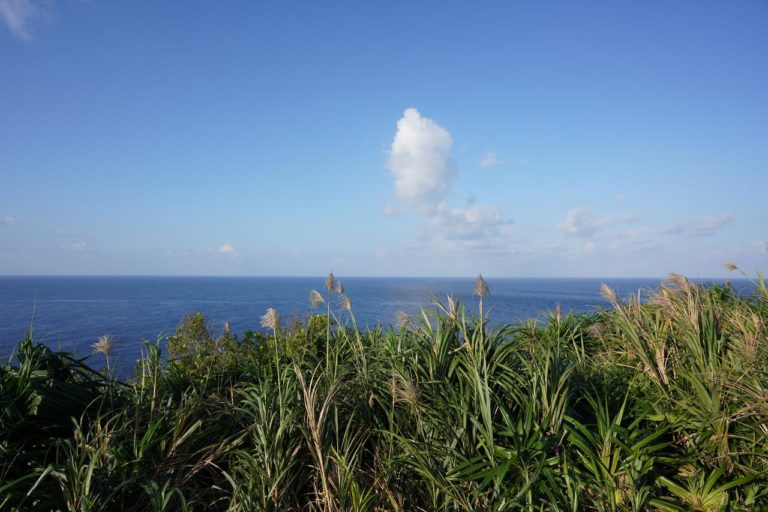 西崎から台湾方面を望みます。距離としては100キロ程度なので、気象条件が合えば見えることもあるようです。でも今日は見えそうになくて残念。