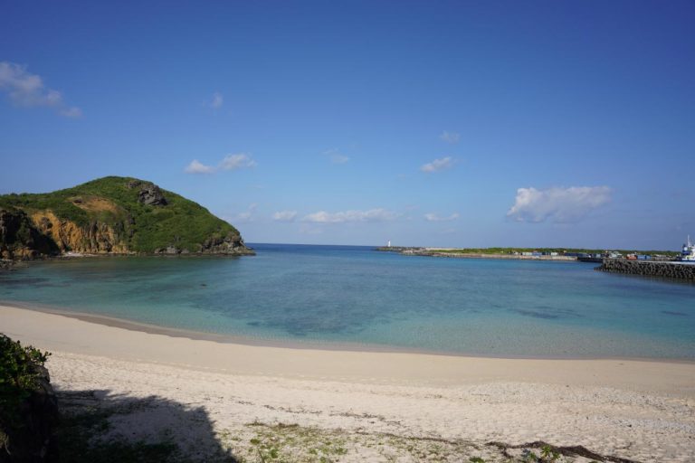 灯台から戻って、昨晩星空を眺めたナーマ浜へ。夜だったからよく見えなかったけど、昼に来たらこんなにきれいな場所だったとは。それにしてもいいお天気。