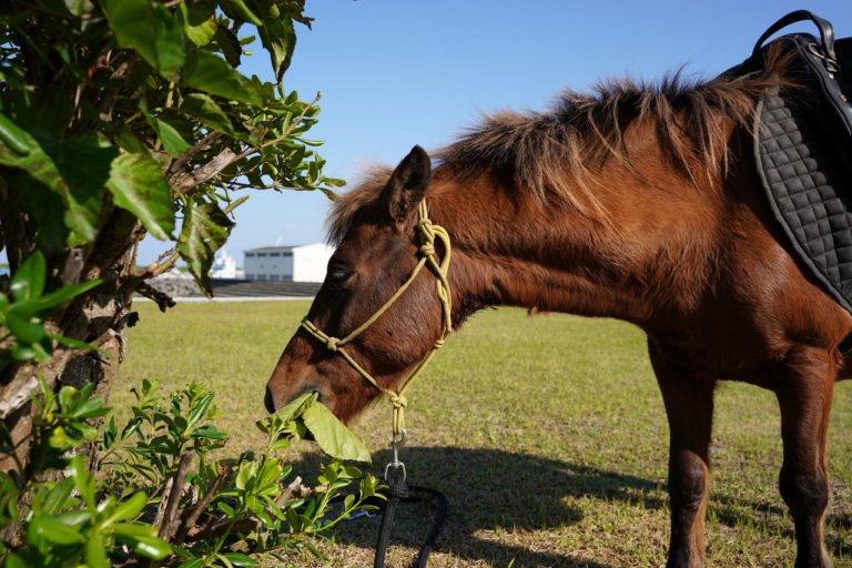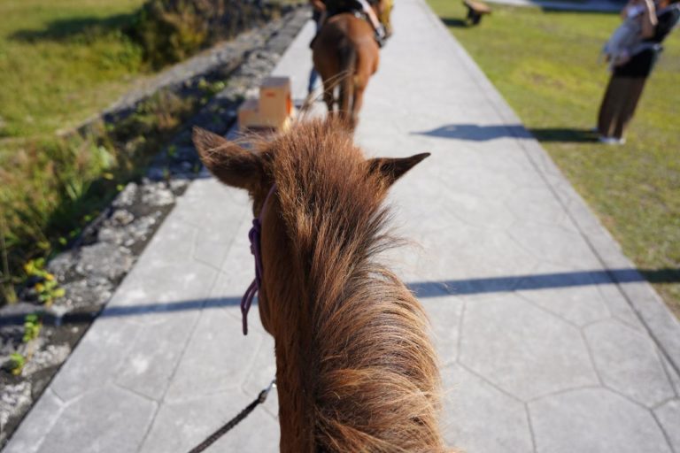 いい景色だなぁと思っていたら、何やらお馬さんがいる。このお馬さんは日本在来種の与那国馬と呼ばれる小さな馬。ちまんま広場さんが月に1回のふれあいイベント(?)を行っていたようです。