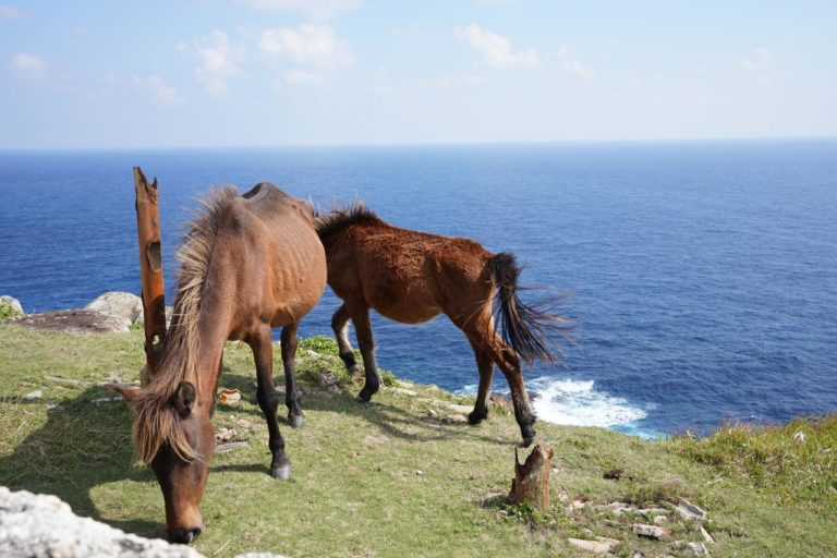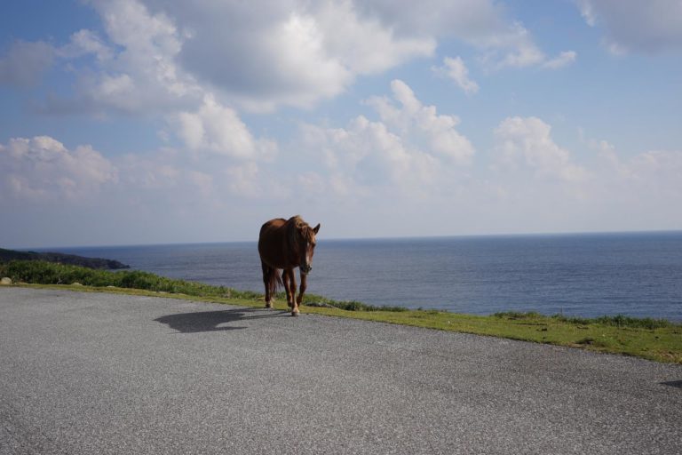久部良地区から与那国島の南部を通る道を進みます。道中には馬がのんびりと歩いていたりしてのどかな雰囲気。縦横無尽に歩いているので、あんまりスピードの出し過ぎには注意。そんなに急ぐような広さの島じゃないしね。