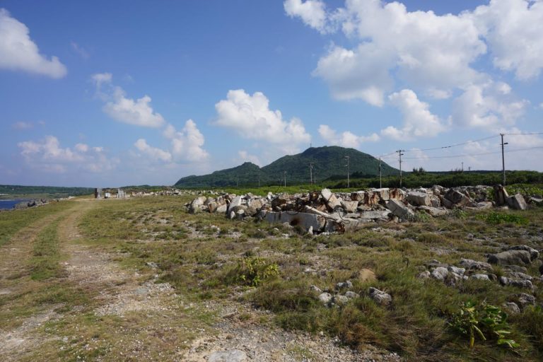 ところで、久部良バリの近くにがれきの山となっている場所があります。実はここ「アダンの夢製塩所」の跡地。2004年の火災によって燃えてしまってからはそのまま残されていたみたいだけど、まさかの今年になって解体。今ではがれきしかありません。