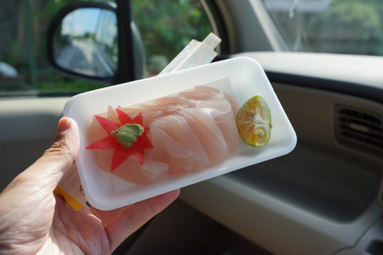 久部良地区の商店「大朝商店」でお刺身を買ってきた