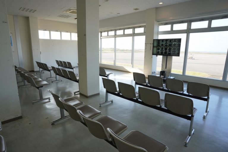 搭乗待合室。コンセントとかもないけども自動販売機はあります。離島の小さな空港ってこんな感じだよね。