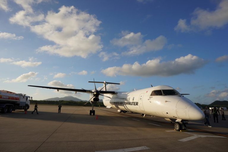 そうして外を眺めていると、那覇空港からの飛行機が到着。特に遅れも無いようなので、予定通り石垣空港へと出発できそうです。
