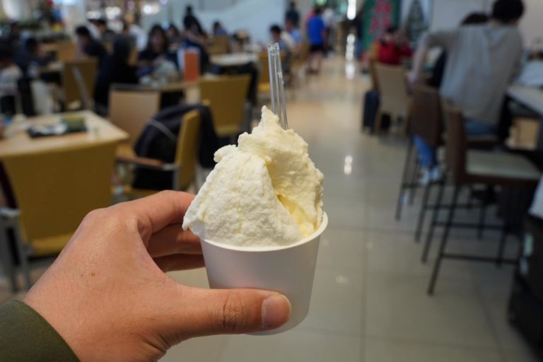 デザートは石垣島ミルミル本舗でジェラート。さまざまな味が選べるんだけど、今回はミルクと島豆腐という変わり種の味をチョイス。ミルクは甘いだけではない牛乳の濃厚な味が楽しめて、島豆腐はプチプチした食感のものが入ってて甘さのバランスとしてはちょうど良かったかも。やっぱり石垣空港に来たら食べたいよね。ごちそうさまです。