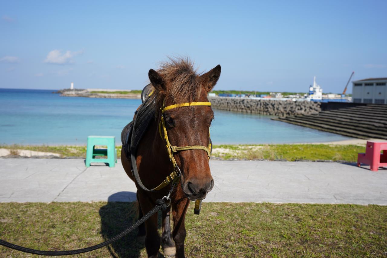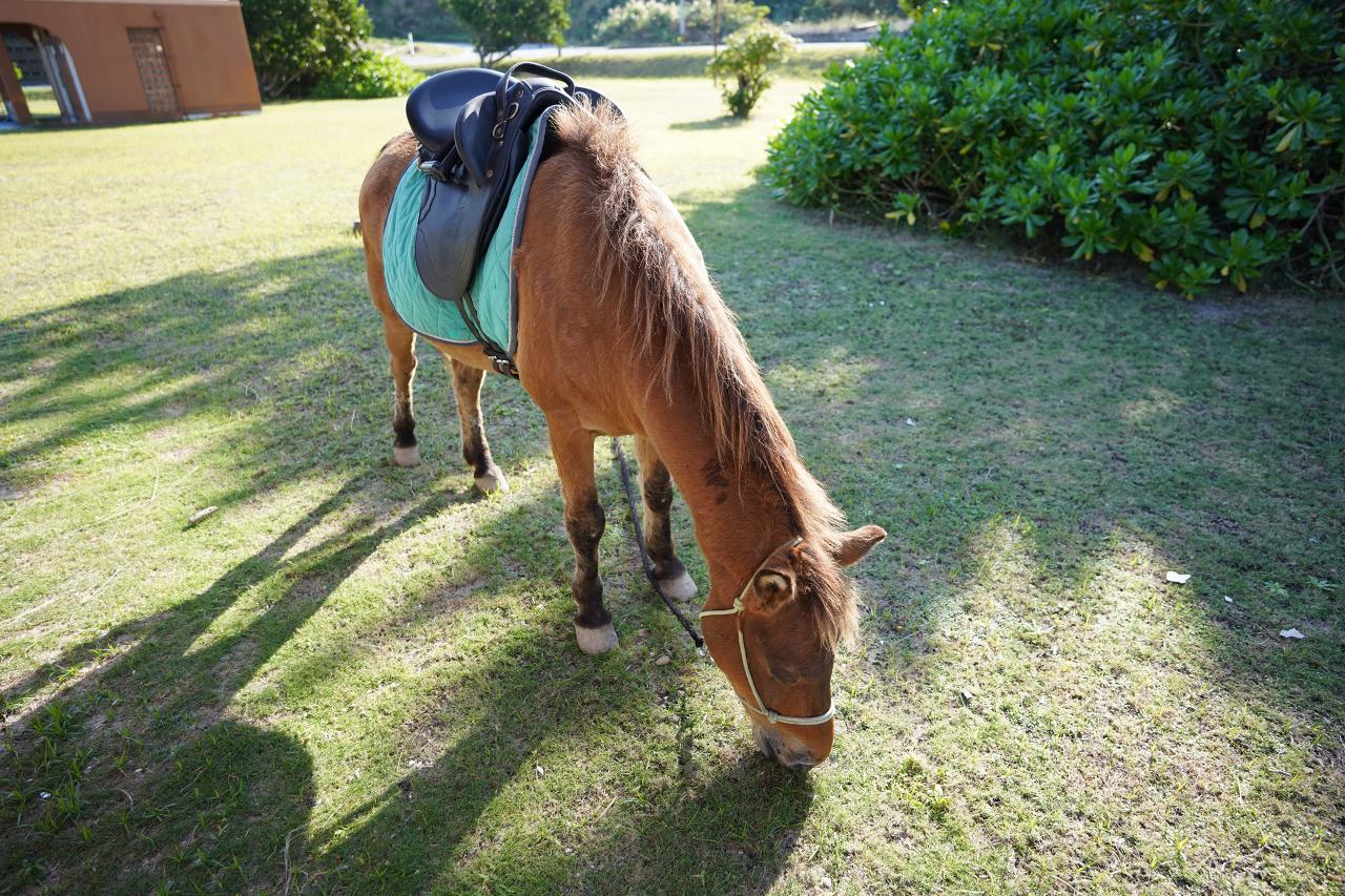 いい景色だなぁと思っていたら、何やらお馬さんがいる。このお馬さんは日本在来種の与那国馬と呼ばれる小さな馬。ちまんま広場さんが月に1回のふれあいイベント(?)を行っていたようです。