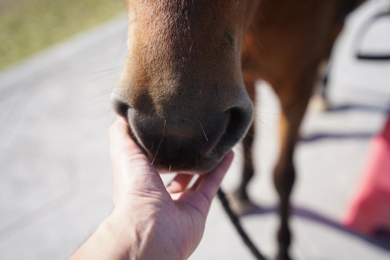 っとその前に、お馬さんの鼻の部分をもみもみ。すごく柔らかくて触り心地良いんだよね。