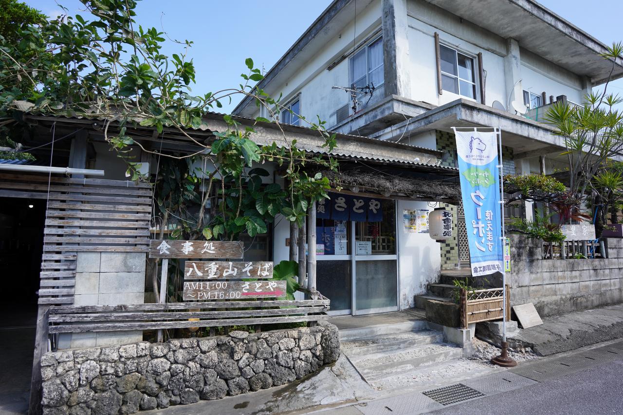 早速クーポンが使えるお店を探して、八重山そばのお店「さとや」にやってきました。店の前にはけっこう車が停まっていたので人気のお店みたい。