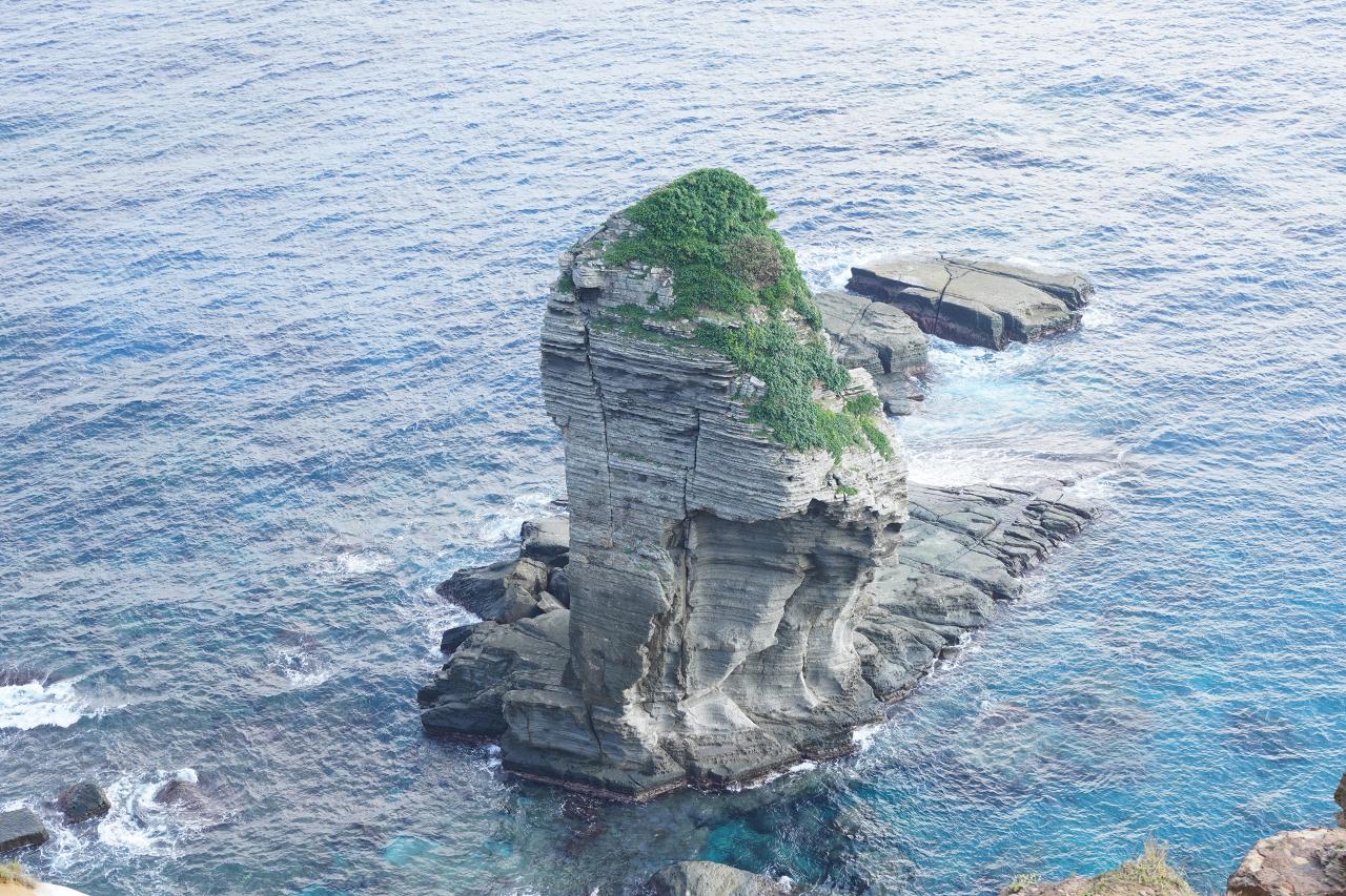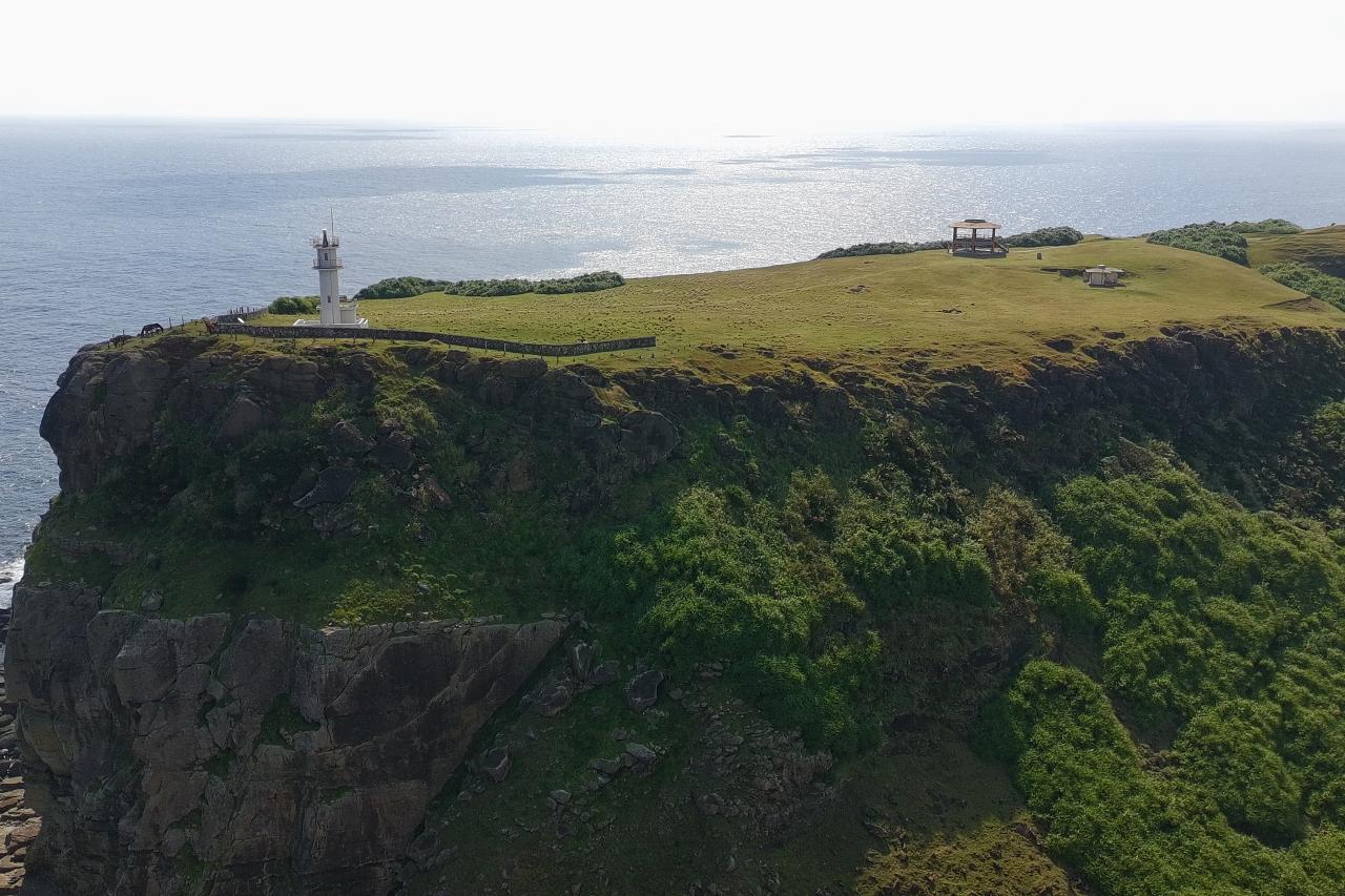 最後に少し離れて東崎を横から撮影。こうしてみると灯台のある場所ってまだまだ先まで行けるんだね。見た感じは断崖絶壁の手前に見えてたけど、案外余裕があったのかも。