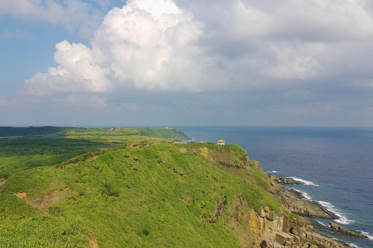 広い高原の中に灯台があるような光景。なんだかここだけ見てると北海道の岬に来ているような錯覚を感じます。