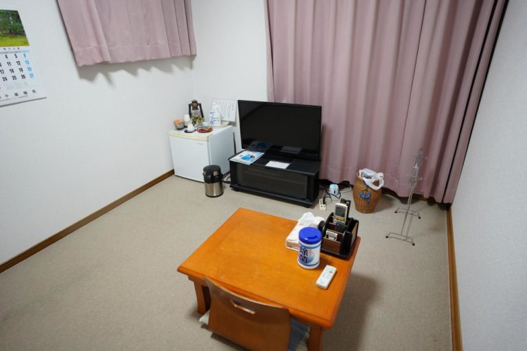 この民宿のお部屋は全部で2部屋。今回私と同伴者とでそれぞれ予約をしていたので貸切状態でした。お部屋は6畳ほどの広さで、まあ2人でも行けるかなという広さ。子供連れの3人とかなら行けそうだけど大人3人はちょっと狭そうです。