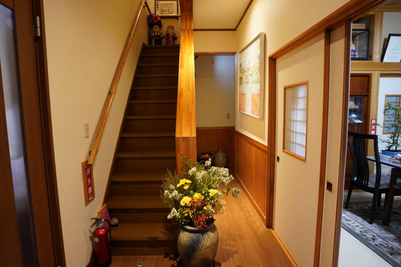 自宅を改装して営業している民宿だそうで、玄関を入ると一般的な家のような光景が広がります。本当に実家に帰ってきたような雰囲気(実際の実家はこんな感じではないけど……)。