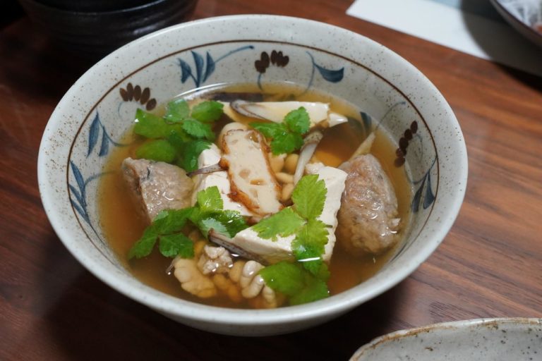 汁物が来ますって言われてお椀に入ったみそ汁を想像していたら、来たのはサンマのつみれ汁。何かの白子のようなものも入っていました。こんな品数豊富で良いのかしら……?