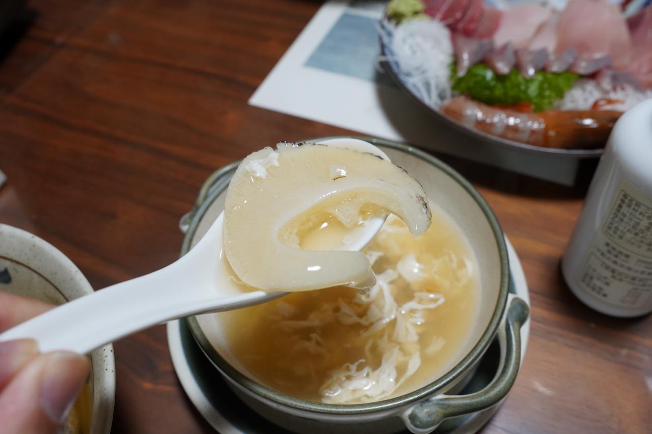 そしてて最後は……気仙沼名物のふかひれスープです。さてふかひれはどれかな。