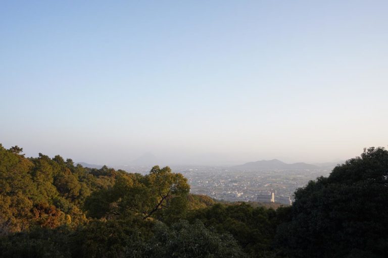 奥社からの景色。やっぱりモヤが掛かってるのであんまり遠くまでは見えません。でも右側から光が入ってきてるのは神々しい雰囲気。