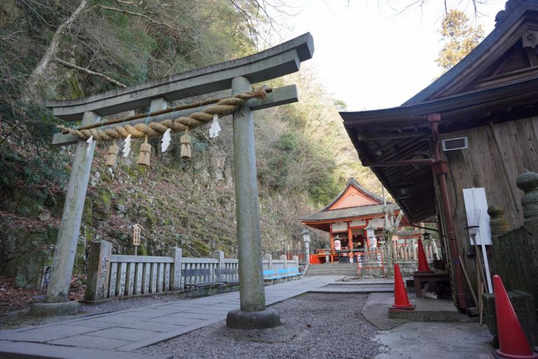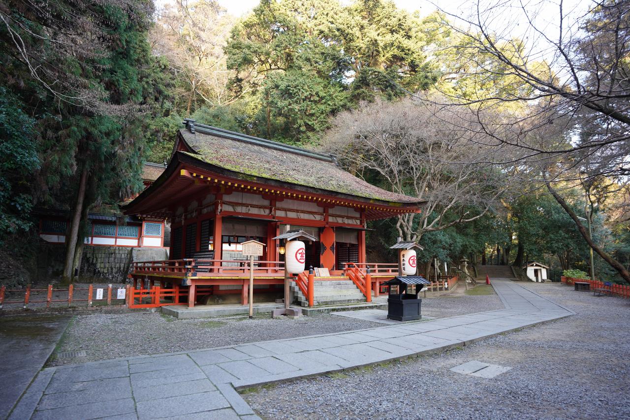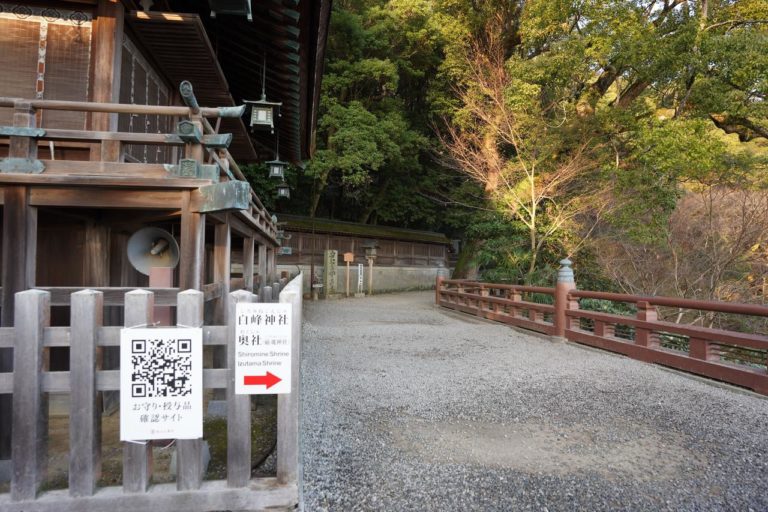 白峰神社から先に進むと、山の傾斜に沿って建てられた神社があります。ここは菅原道真命を祀る「菅原神社」。学問の神様として知られ、有名どころでは太宰府天満宮などでも祀られています。ここも学問などのご利益が受けられそうですね。