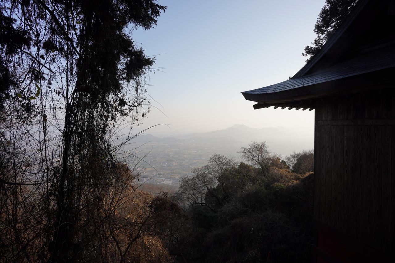 本殿の横からは天気が良ければ瀬戸大橋を眺められる展望台があります。今日は天気こそ良かったものの、少しモヤっていて遠くまでは見通せず。まあ何度も見てる景色だから来年に期待かな。