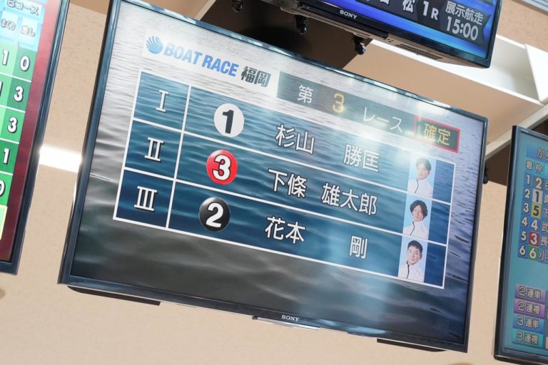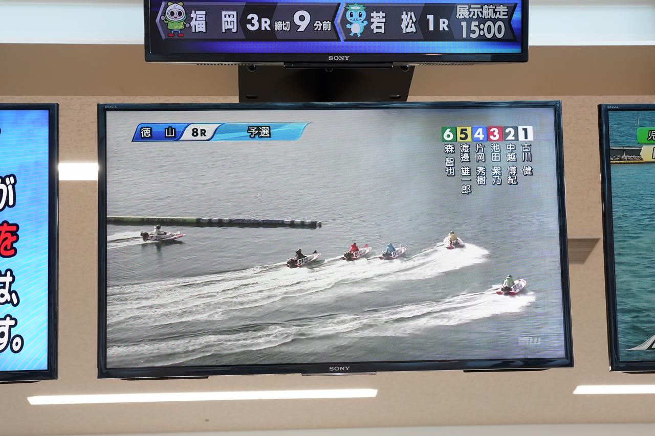 モニターでレースを生中継で観戦。結果は……ハズレで200円を失いました。ぐぬぬ。