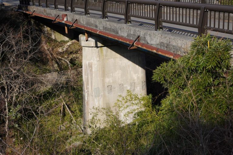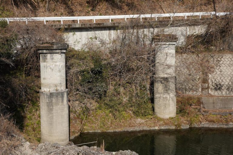 今でも橋を支えている橋脚こそ、鉄道時代の遺構。特徴的な円柱ではないものの、塩江温泉鉄道時代に造られたものなのだそうです。それにしても乗っているだけにも見えるけど、下から見たらどんな感じなんだろう。ドローンとか持ってくれば良かったかも。