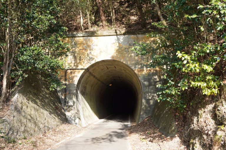その先にあるトンネルは「中村トンネル」で、ここも鉄道遺構。当時のトンネルをそのまま道路に転用しています。