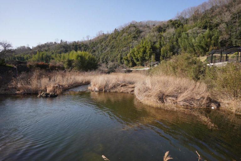 橋が架かっていたであろう場所。橋脚の高さが対岸の高台と合っているので、写真の真ん中あたりに真っすぐ線路が通っていたであろうことが想像できます。今であったらいい感じの撮影スポットにもなってそう。