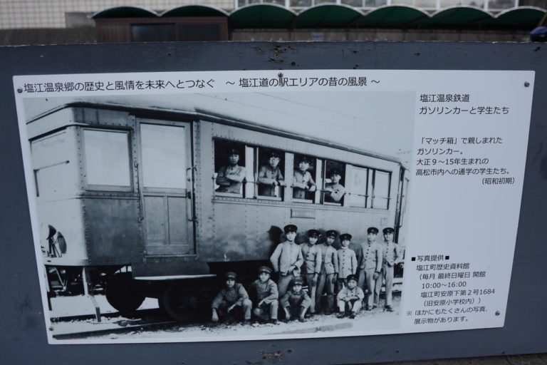 なお塩江温泉への交通は、現在ではことでんバスが担当。当時の駅跡から少し離れた、道の駅の前にバス停が設置されています。