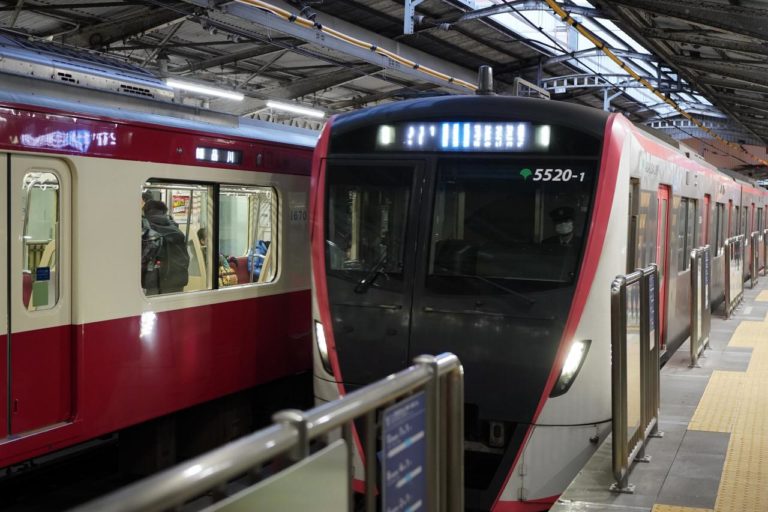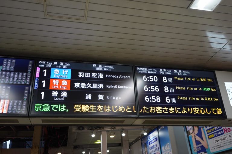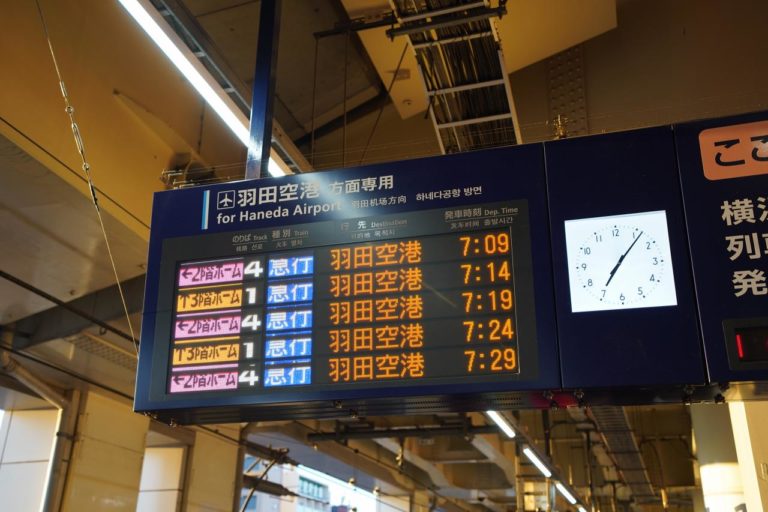 羽田空港行きは横浜方面からやってきて、スイッチバックして羽田空港方面へと向かっていきます。同じホームから品川方面も出発するので、駆け込み乗車するとあらぬ方向に進んで行くことがあるので注意。