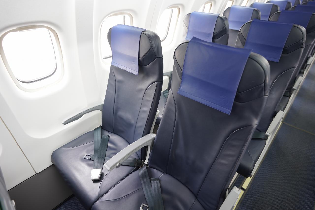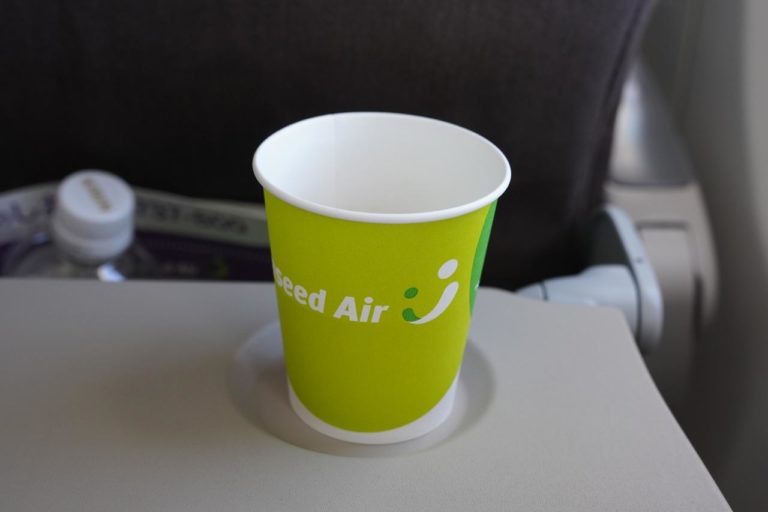 機体はあまり大きくないけども、座席はある程度の広さが確保されています。搭乗時間が短いことがあって機内サービスは最低限だけど、そもそも飛んだらすぐ降りちゃうような飛行機であれこれ配ってる時間も無いと思う。