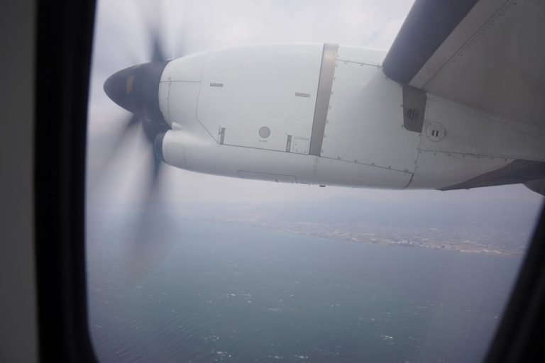 乗ってから毎回思うんだけど、プロペラの横に座ってしまうとあんまり景色が楽しめない。一番前とは言わなくても3列目くらいを確保しておくのが無難なのかも。