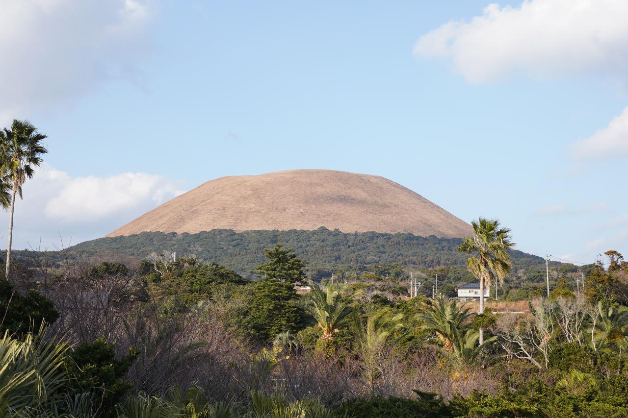 鐙瀬熔岩海岸を後にして、続いては裏手にある鬼岳にやってきました。大きな駐車場があるので、停めて少し上がると展望台があります。