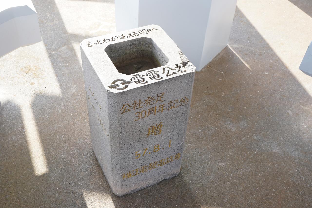 展望台に置いてあった灰皿のような物なんだけど、そこには「もっとわかりあえる明日へ」とスローガンに加えて「電電公社」と書かれています。こうして電電公社って書いてあるのを見るのは初めてかも。