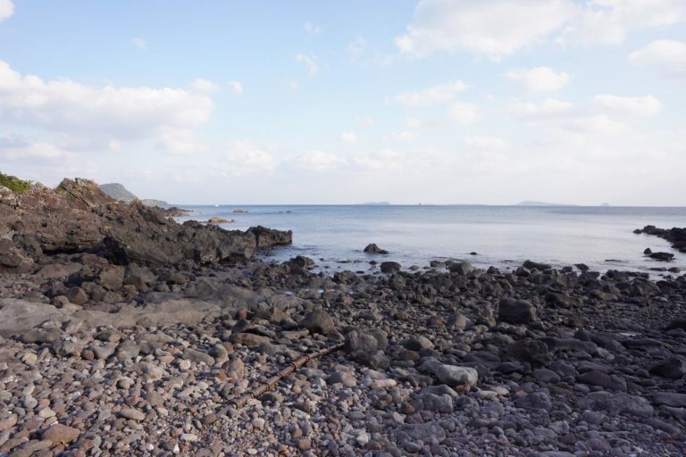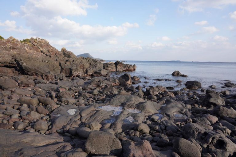 こうして写真で見ると普通の岩場にしか見えないけど、よく見ると岩に小さな穴が無数に空いています。これは火山ガスが抜けた跡で、溶岩であることを示す証拠になっています。