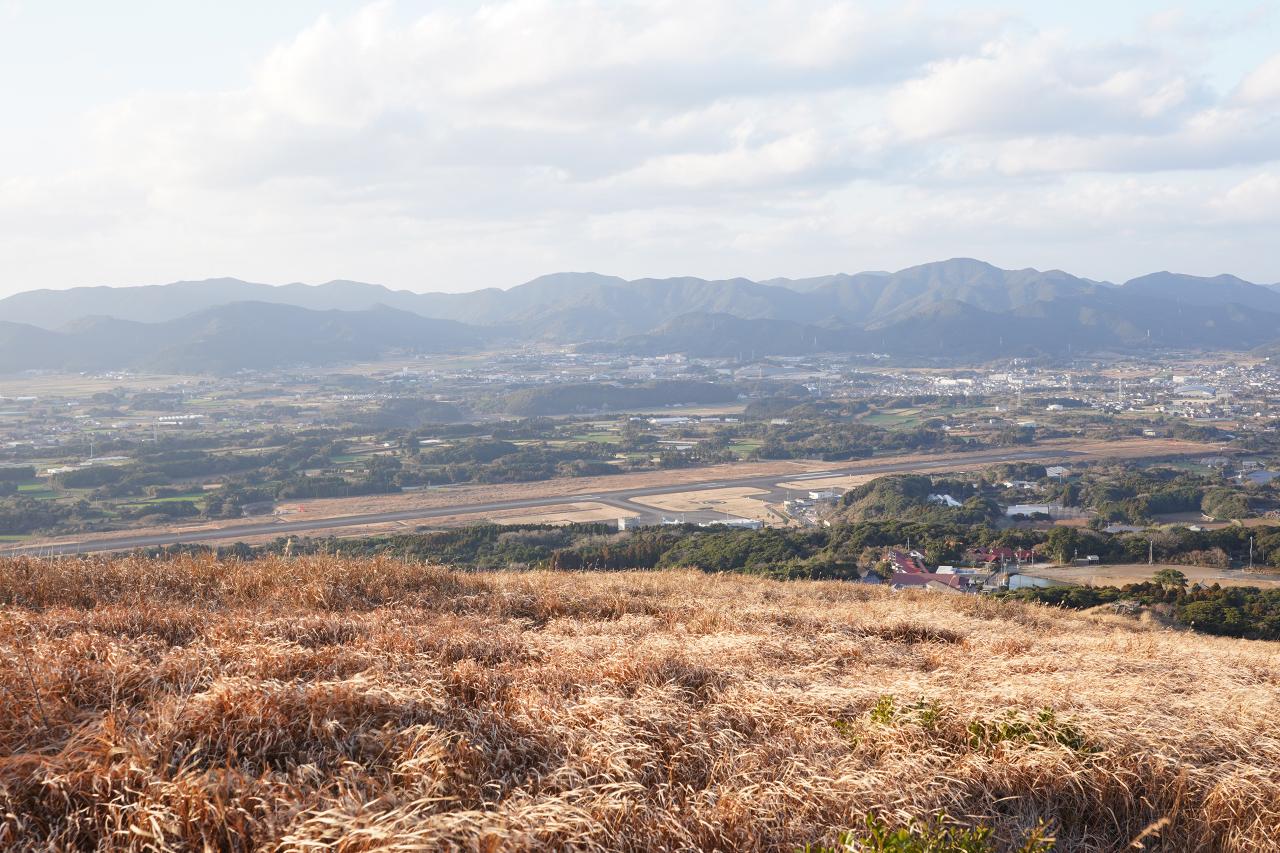 左手を見ると五島福江空港を眺められます。もう少し先に行けばよく見えそうだけど、あまり道から外れたくない。落ちてからでは遅いし。