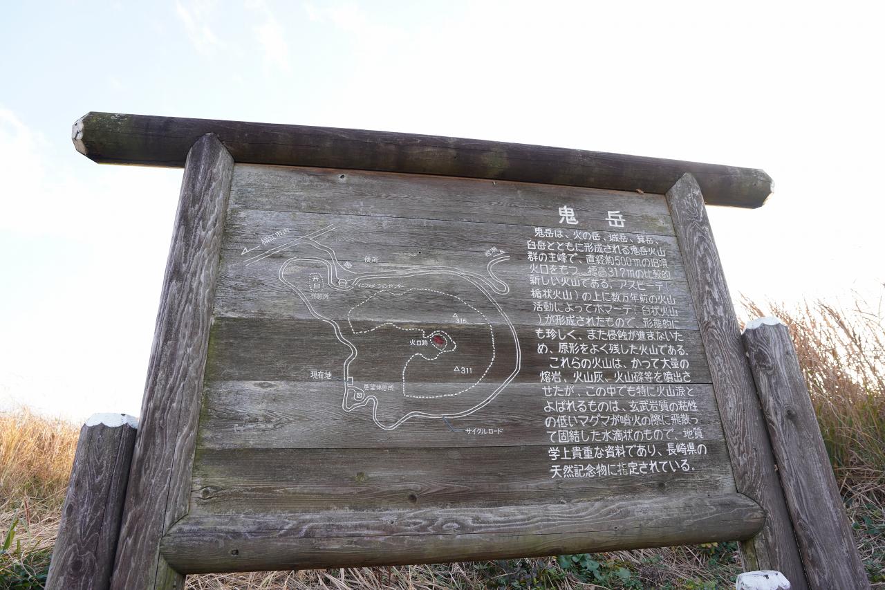 しばらく進むと「鬼岳」と書かれた小さなモニュメントを発見。ここが山頂っぽいけど、反対側に何かあるのが気になるので行ってみましょう。