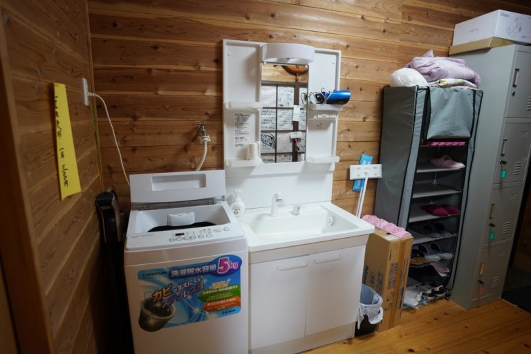 民宿などでは定番ですが、洗面台やトイレ、シャワーなどは共用設備。でもリニューアルされているようできれいで使いやすい設備でした。なお洗濯機は1回300円のようです。