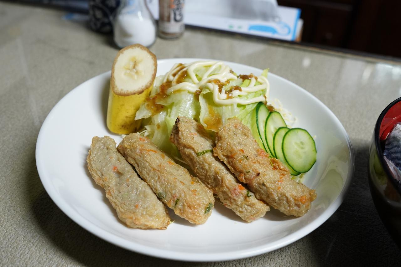 もう一つは魚の練り物の揚げ物。これも五島の名物だよね。特にしょうゆなどを付けなくても味がしみ込んでいておいしい。