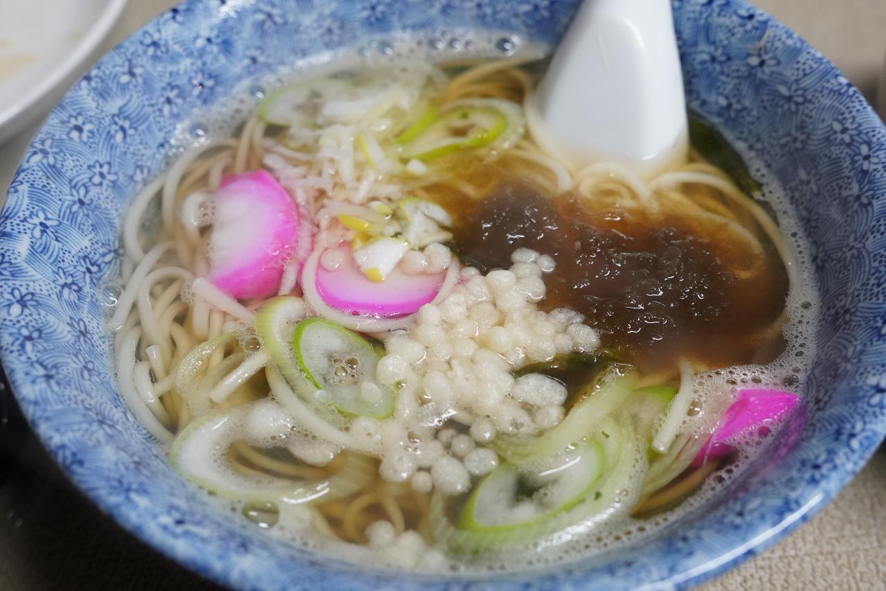しばらくすると、汁物の代わりに五島うどんがやってきました。五島うどんはあごだしのスープに細めの麺を入れた麺料理。寒い時期なので体がポカポカになります。やっぱり寒い時期に熱いものを食べるのって良いよね。