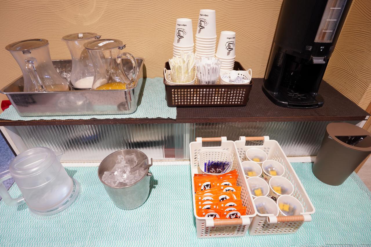 またジュースや牛乳にコーヒー、納豆や味付けのりにふりかけはフリーサービス。納豆とか苦手な人もいるだろうからこれはこれで良いかも。