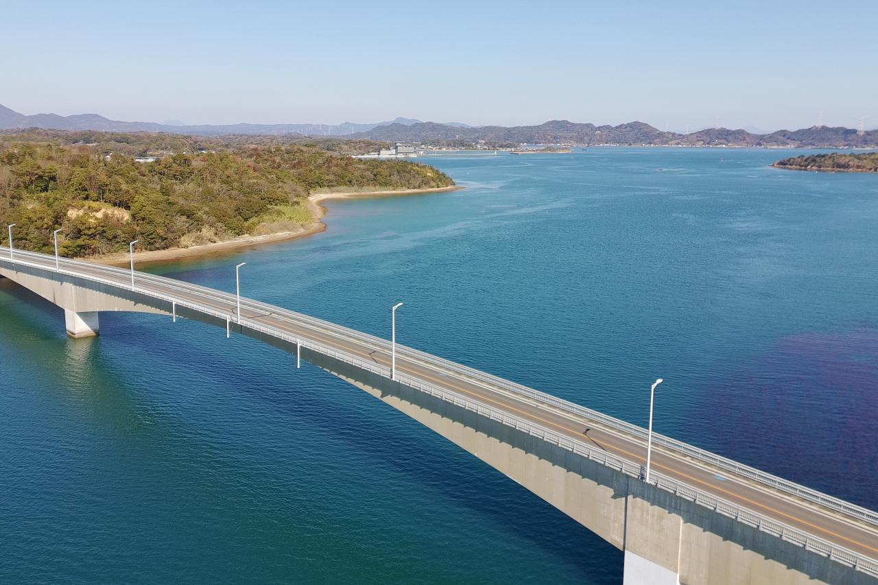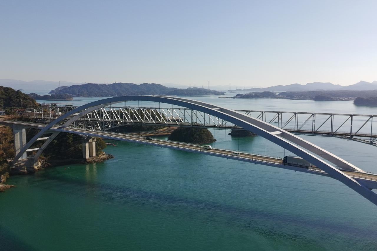 天草五橋の一つ「3号橋(中の橋)」でドローン撮影